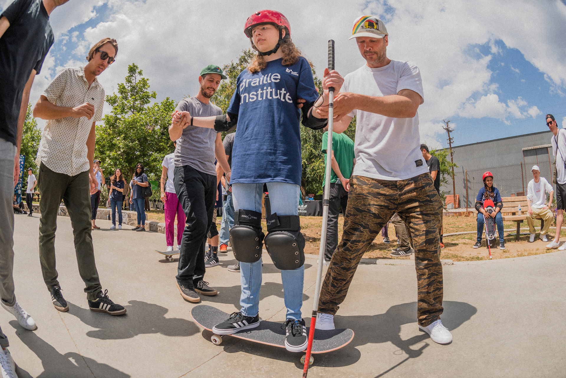 Now, he’s teaching other vision impaired people to skate. Mancina partnered with adidas Skateboarding and the Braille Institute for a workshop in Los Angeles to share his story, inspire the youth, and get kids rollin’ for the very first time. Pretty damn inspiring, if you ask us.